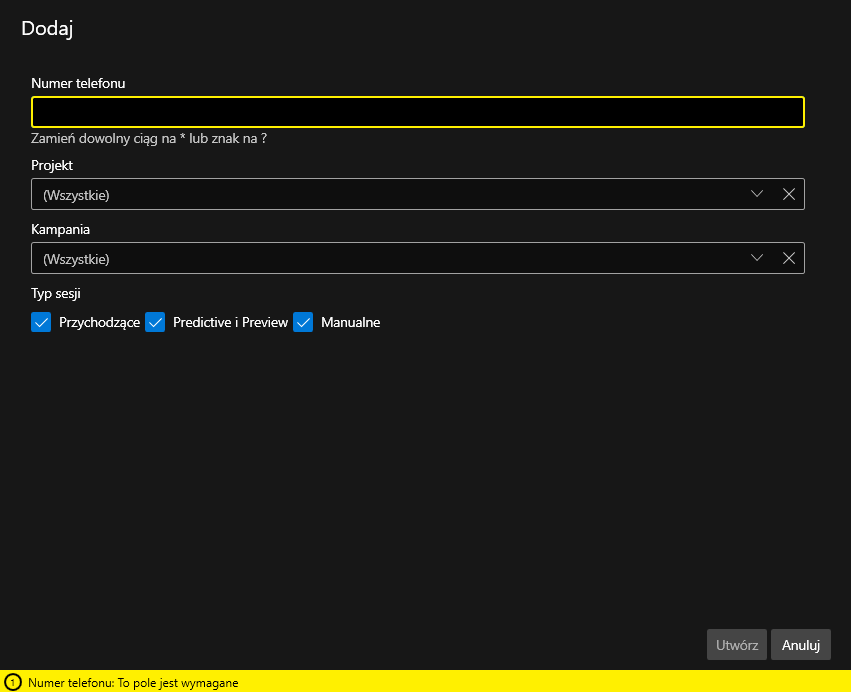 - Kampania - Kampania w ramach której numer ma być zablokowany, przy braku wyboru blokada będzie obowiązywać na wszystkich kampaniach