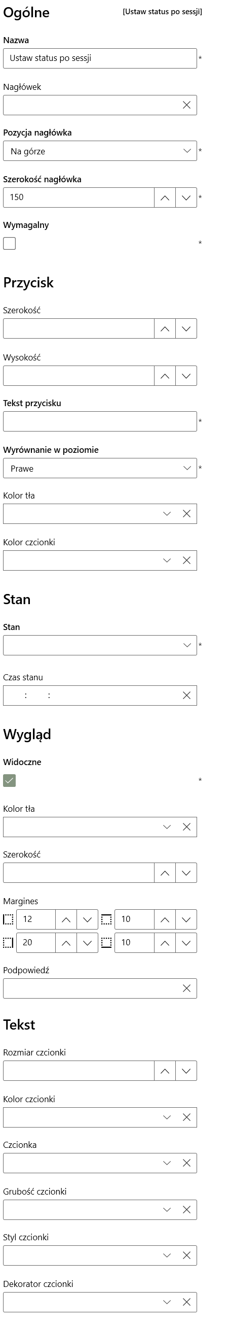| Tekst przycisku | Tekst wyświetlany na przycisku, jeśli nie podano wyświetlany jest tekst “Ustaw status”. |